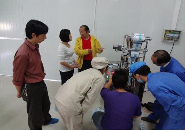 ͼΪǧ½ðÑøÉú·»½¡¿µÆ·¹É·ÝÓÐÏÞ¹«Ë¾Éú²ú²¿»ÆÁá·¼Ö÷ÈÎÂÊÔ±¹¤ÑéÊÕZKB-K¿ÅÁ£°ü×°»úʵ¿ö¡£