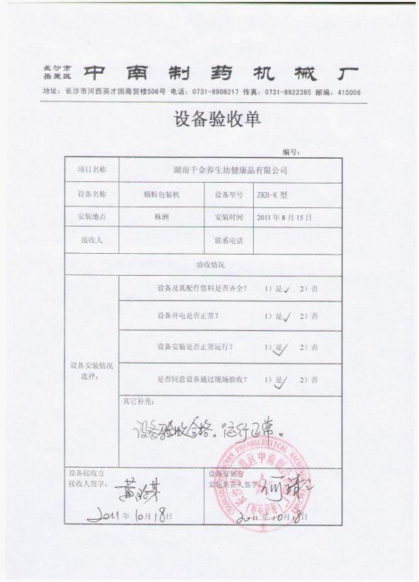 ºþÄÏÖêÖÞǧ½ðÒ©ÒµÊÇÒ»¼ÒÉÏÊй«Ë¾£¬Ö÷ÒªÉú²ú¸¾¿ÆÓÃÒ©¡£2011Äê10Ô£¬¸Ã¹«Ë¾ÔÂÏòÎÒ³§¹ºÂòÁËZKB-KÐÍ¿ÅÁ£°ü×°»ú¡¢DZ-60ÐÍÈ«×Ô¶¯ÖÆÍè»ú¡¢LMÐÍÁ¶ÃÛ»ú¡¢RXH-48ÅÌÈÈÑ»·ºæÏä¡¢KZ-180ÐÍ¿ìËÙÕûÁ£»ú¡¢CH-200ÐÍ»ìºÏ»ú¡¢YK-160ÐÍÖØÐÍ¿ÅÁ£»ú¡¢GF-30BÐÍ´ø³ý³¾ÎÐÂÖ×ÔÀäʽ·ÛËé»ú×éµÈÉ豸¡£ÏÖÒÑͶÈëʹÓá£