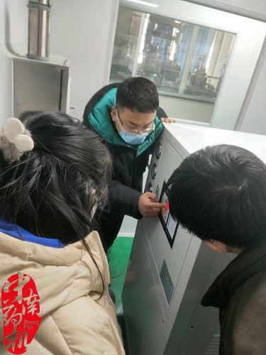 今年3月,天津现代职业技术学院新建实训车间,对购置的第一批冻干粉针剂生产线:ZNHX-300型回转式超声波洗瓶机、RXH-3.5型高温灭菌隧道烘箱、CZLY-2型冷冻干燥机等设备,我厂技术工程师再次到达现场指导安装调试。