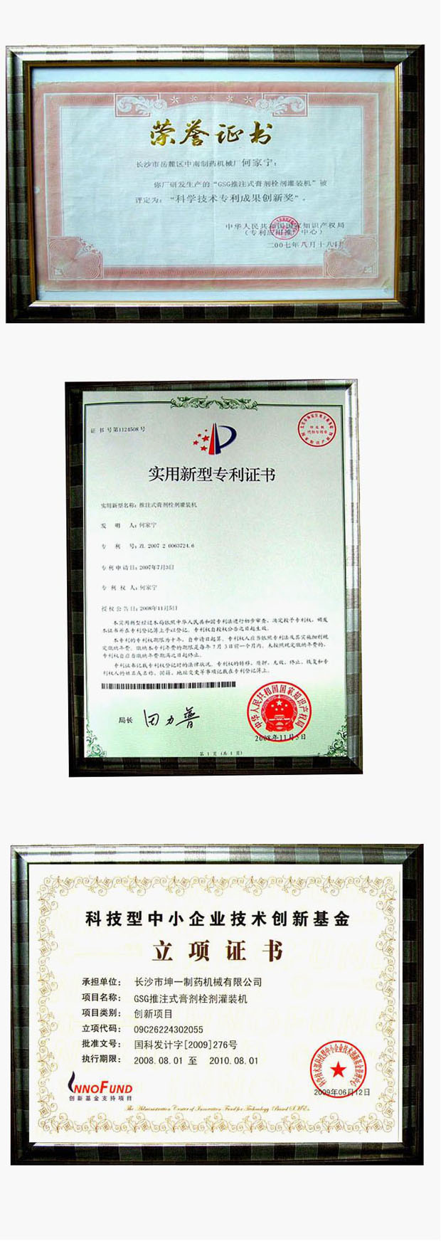 2009Ä꣬ÎÒ³§¶Ê³¤ºÎ¼ÒÄþÏÈÉú·¢Ã÷µÄ¡°GSGÐ͸à¼Á˨¼Á¹à×°»ú¡±ÈÙ»ñ¹ú¼Ò´´Ð»ù½ðÖ§³Ö£¨×¢£º³¤É³ÊÐÀ¤Ò»ÖÆÒ©»úеÓÐÏÞ¹«Ë¾ÊÇÖÐÄÏÖÆÒ©»úе³§ÏÂÊôÆóÒµ£¬×¨ÃÅÑÐÖÆ¿ª·¢¸ßм¼ÊõÏîÄ¿¡£·¨¶¨´ú±íÈË£ººÎ¼ÒÄþ£©¡£Õâ¿î»úÆ÷ÒÑÔÚ¹úÄÚ¡¢¹úÍâʹÓÃÎåÄ꣬¿ÉÒÔ¹à×°ÒºÌå¡¢¸à¼Á¡¢Äý½º¡¢Ë¨¼ÁµÈ£¬¿ÉÒÔÊÇÍÆ×¢Ê½£¨×¢ÉäÆ÷£©Ò©¾ß»òÆäËûÐÎ×´Ò©¾ß£¬Ö»Òª¿Ú¾¶´óÓÚ2.4mm¼´¿É¹à×°£¬Ã¿´Î¹à×°8Æ¿¡£ÓÉÓÚ²ÉÓÃÁËÖ±Ïßʽ¹à×°£¬¹à×°¹ý³ÌƽÎÈ£¬¶Ôλ׼ȷ£¬¼ÁÁ¿¾«ÃÜ£¬Ã¿·ÖÖÓ¹à×°60-100Æ¿¡£