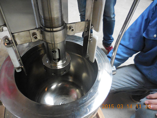 ÎïÁÏÔÚË®¹ø¡¢Ó͹øÄÚͨ¹ý¼ÓÈÈ¡¢½Á°è½øÐлìºÏ·´Ó¦ºó£¬ÓÉÕæ¿Õ±ÃÎüÈëÈ黯¹ø£¬Í¨¹ýÈ黯¹øÄÚ½Á°è£¬¾ÛËÄ·úÒÒÏ©¹Î°åʼÖÕӺϽÁ°è¹øÐÎÌ壬¹Î¾»¹Ò±ÚÕ³ÁÏ£¬Ê¹±»À¨È¡µÄÎïÁϲ»¶Ï²úÉúнçÃæ£¬ÔÙ¾¹ýҶƬÓë»Ø×ªÒ¶Æ¬µÄ¼ô¶Ï¡¢Ñ¹Ëõ¡¢ÕÛµþ£¬ÏòÏÂÁ÷Íù¹øÌåÏ·½µÄ¾ùÖÊÆ÷£¬ÎïÁÏÔÙ´Îͨ¹ý¸ßËÙÐýתµÄÇиîÂÖÓë¹Ì¶¨µÄÇиîÌ×Ö®¼äËù²úÉúµÄÇ¿Á¦¼ô¶Ï¡¢³å»÷¡¢ÂÒÁ÷ºó£¬Ñ¸ËÙÆÆËé³É200nm-2umµÄ΢Á£¡£ÓÉÓÚÈ黯¹øÄÚ´¦ÓÚÕæ¿Õ״̬£¬ÎïÁÏÔÚ½Á°è¹ý³ÌÖвúÉúµÄÆøÅݱ»¼°Ê±³é×ß¡£